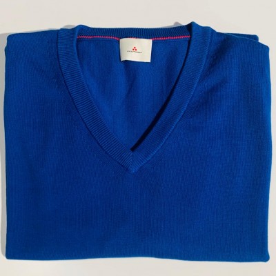 La maglia ha una vestibilità slim, collo a punta, tessuto in cotone
