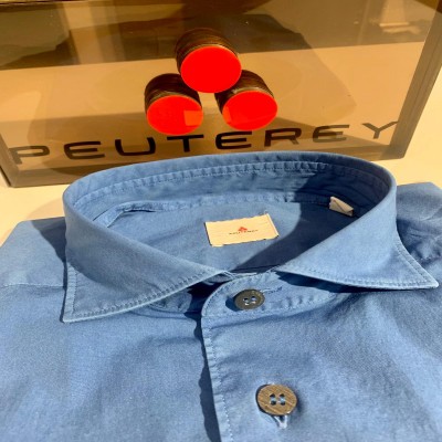 La camicia ha una vestibilità regolare, tessuto in cotone, tinta unita