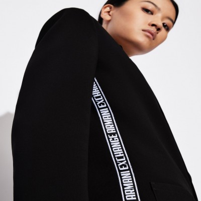 Il blazer da donna incontra l'athleisure e acquista carattere grazie al logo tape a contrasto applicato lateralmente. Il risultato è un riuscito mix di formale e sportswear, inedito e inconfondibile.