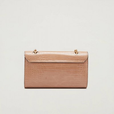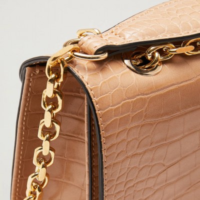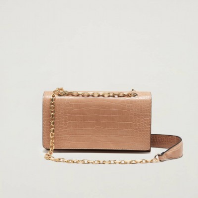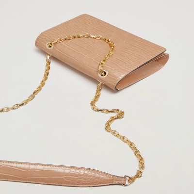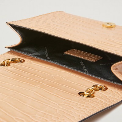 Sempre chic e più che mai in tendenza la texture coccodrillo di questa borsa. Compatta ma non mini, con tracolla a catena scorrevole, si porta a spalla o cross-body. Con le pumps coordinate lo stile raddoppia. Formato 20x15x5 cm.