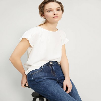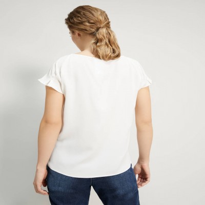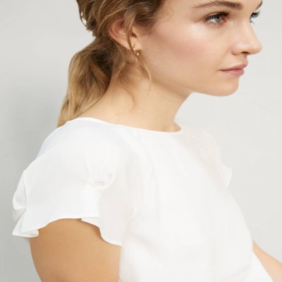 La blusa in blend di seta crêpe de Chine è un passe-partout per un guardaroba chic. Taglio diritto e morbido, design pulito con un tocco in più: il motivo di pinces sulle maniche che crea un volume balloon appena accennato