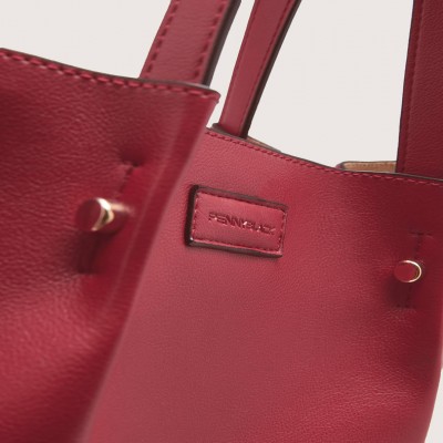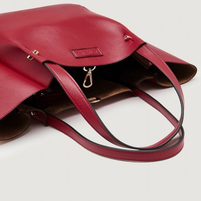 D’impatto in rosso fiammante la shopper con dettaglio di borchie che creano un design tridimensionale. Perfetta per giornate piene di impegni ma anche per il weekend, è completa di maxi pochette coordinata