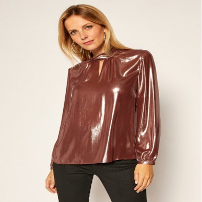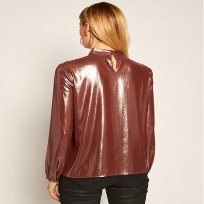Per splendere come una star c’è questa blusa. Ricopre la leggerezza della georgette con riflessi laminati e li accende con leggere arricciature. Collo a listino con sottile intaglio a V, fit diritto e morbido.