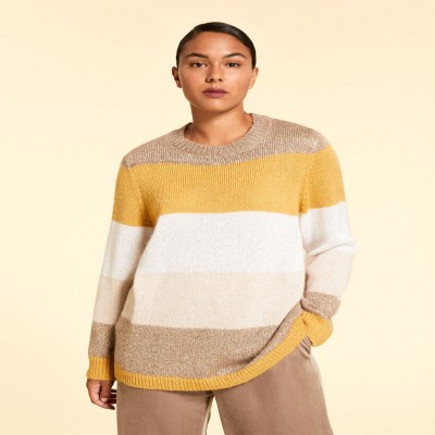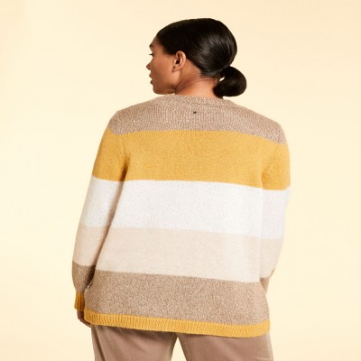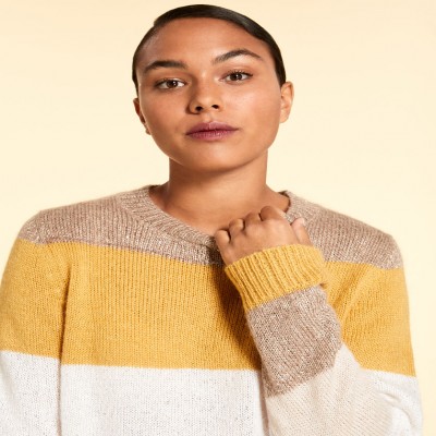 Maglia in filato di mohair color block con paillettes, linea diritta, collo tondo, maniche lunghe, profili rifiniti a costine.
