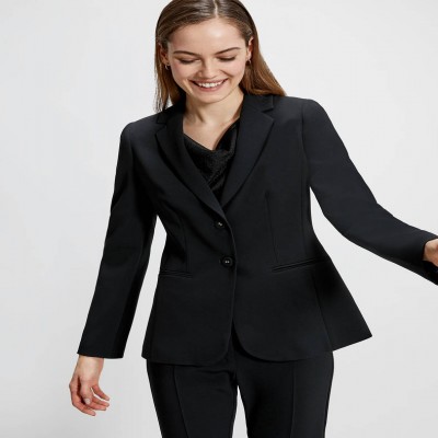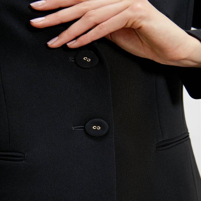 Il blazer perfetto per passare dall’ufficio alla serata con un semplice cambio di accessori. Design a due bottoni in tessuto fluido, sfiora la silhouette con un taglio slim. Foderato. Con i pantaloni coordinati si crea un tailleur impeccabile.