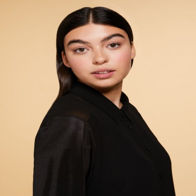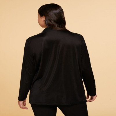 Camicia in jersey calandrato, dalla linea diritta, con inserti in tessuto, maniche lunghe, spacchi laterali al fondo.