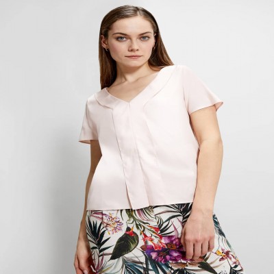 I volant sul davanti aggiungono un tocco leggero al design pulito di questa blusa. Taglio diritto e morbido in twill fluido, scollo a V e maniche corte. Sotto il blazer o sui jeans, è sempre al posto giusto.
