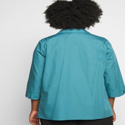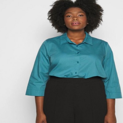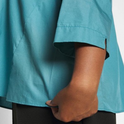Camicia in popeline di cotone comfort color ottone, dalla linea svasata, con maniche a tre quarti e spacchetto al fondo. Chiusura con bottoni.