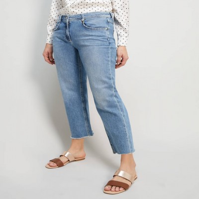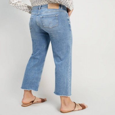 Vibrazioni Seventy con i jeans kick-flare fit. Denim stone washed leggermente elasticizzato, taglio slim fino al ginocchio e leggermente svasato fino alla caviglia, con orlo sfrangiato. Vita media e zip nascosta.