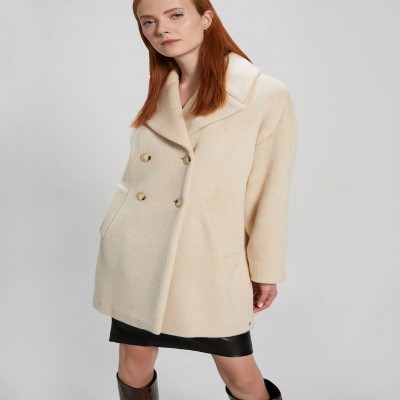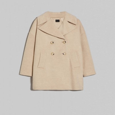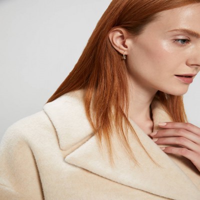 In blend con alpaca e lana, texture tattile in bianco latte, questo cappotto vince il grigiore invernale in grande stile. Tagliato come un caban, doppiopetto con maxi revers, ha una silhouette diritta e morbida, con contropiega e martingala sulla schiena. Foderato.